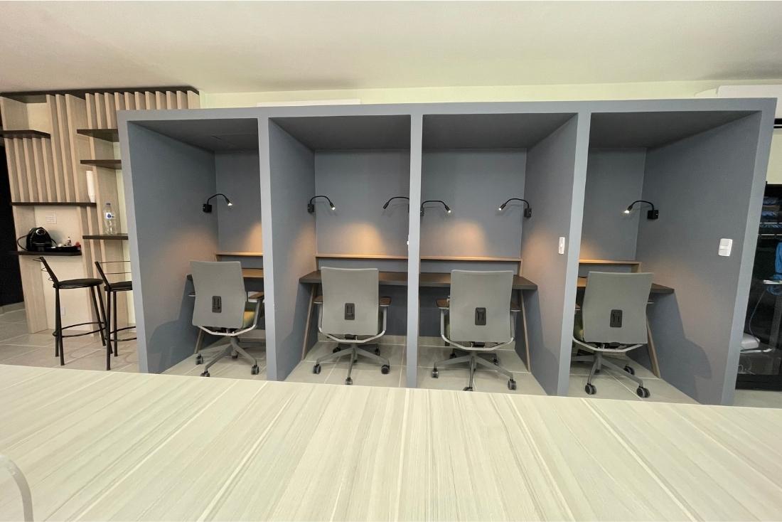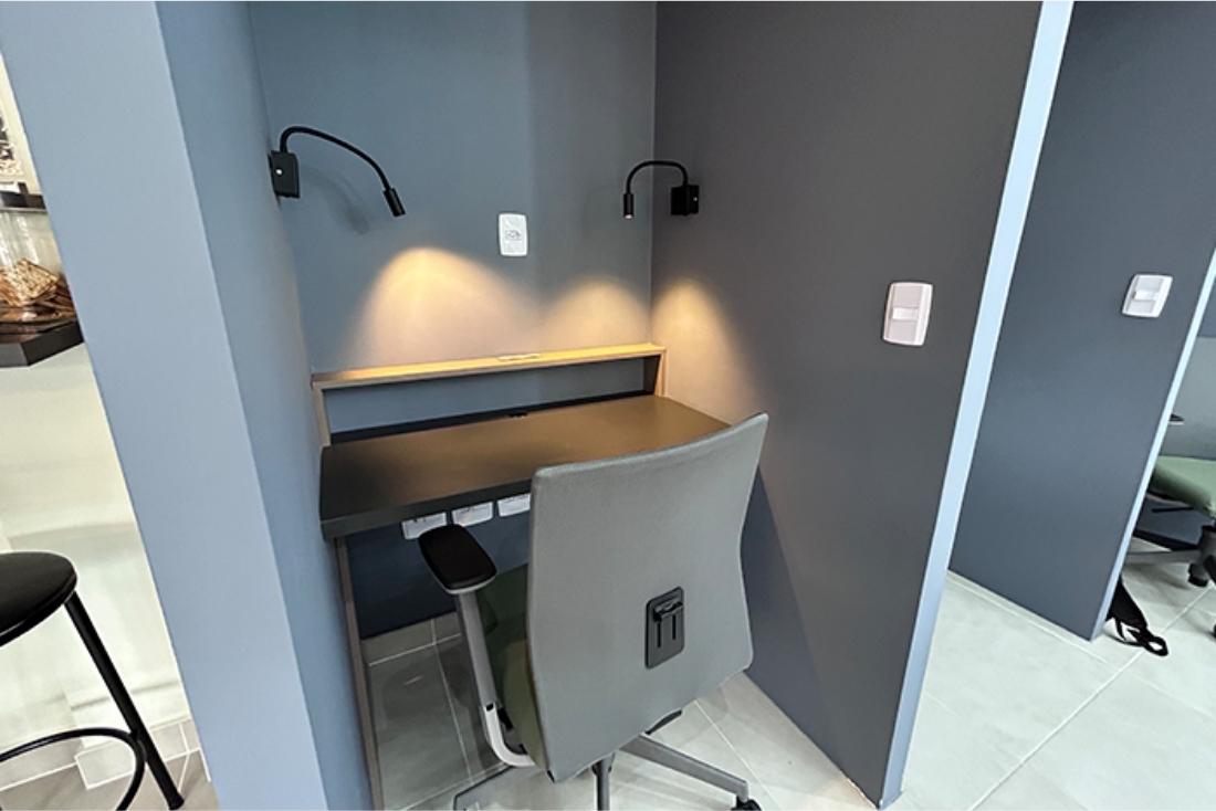 Ambiente moderno, agradável e equipado, cuidadosamente pensado para ajudar na sua concentração e criatividade.